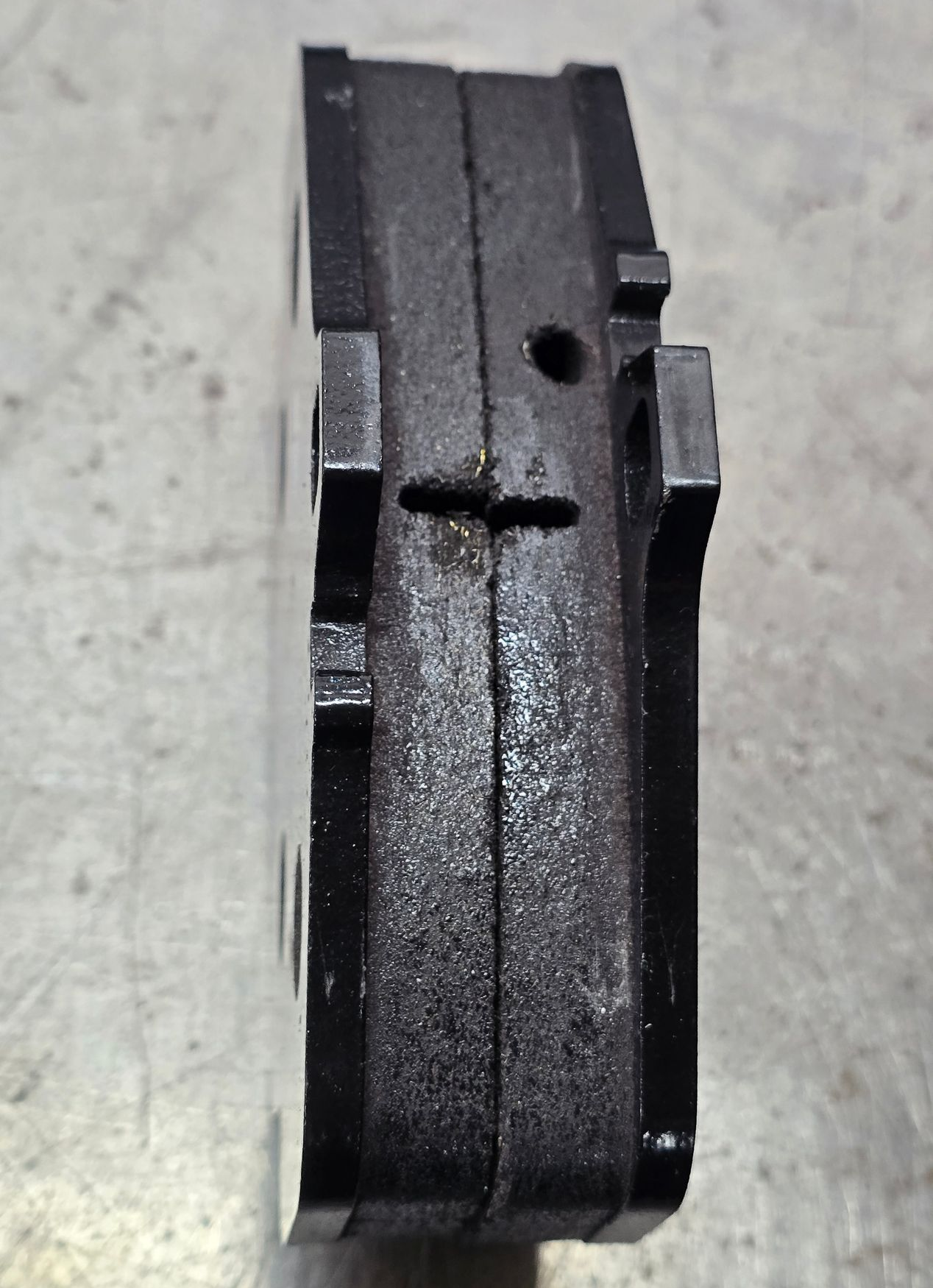 Image Above: Un-modified pad on the left. Modified pad, for wear sensor, on the right. This Porsche owner bought a complete performance brake kit from a reputable online store. The brake pads that come in the kit don't have holes for the new wear sensors (also in the kit) because they are a crossover pad that bridges the gap between Autocross and Daily Driving. I think it is assumed that when it comes to performance pads and performance driving, you always have your eyes on wear items. Either by removing the wheels for new/different tires, or by routine checks and cleaning. Since this Porsche owner is going to be driving mostly on Daily Driver's side of the performance spectrum; I am drilling holes in all eight break pads for the new wear sensors.